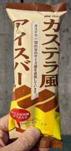 | 先日、コンビニでアイスのコーナー(冷蔵庫)を覗いたら、 “カステラ風アイスバー” と大きな文字で書かれた、見慣れぬパッケージが目に入り、 ・・・ん? 新商品かな? と気を引かれたので、買ってみました。 そのコンビニの駐車場で早速封を破り一口食べたら、 これが、あなた、 もう、美味しいったらありゃしない。 “カステラ風” どころか、しっかりカステラ。 感動してしまいました。 以前、 “ガリガリ君” のりんご味や梨味は 本当にりんごや梨の味がするので感動する・・・、 って述べた事がありましたが(第79回「健康でいるために」参照)、 それと同じ衝撃でしたので、 パッケージを改めて見直してみたら、 この “カステラ風アイスバー” も、やっぱりメーカーは赤城乳業でした。 いやぁ~、赤城乳業のアイスは、どれも、本当に美味しいですねぇ。素晴らしい!
