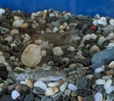 ・・・まぁ、 モツゴもスジエビもヨシノボリも、 同じ池で捕獲してきた生き物ですので、 元々、仲良く暮らしていた者同士だったのかもしれません(笑)。
