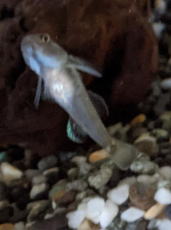 ハゼといえば、 僕と同世代の人なら、 テレビアニメ『ハゼドン』を思い出す人も、少なくないでしょうね。 昭和47年、 僕が小学2年の時の2学期から、放送が始まった番組で、 主人公のハゼドン(ハゼ)が シーラン(人魚)とプーヤン(フグ)とともに海の中の世界を旅する、冒険物語でした。 毎回、この『ソフビ大好き!』を読んで下さっている方なら、 僕が、テレビアニメには全くと言っていいほど興味が無く、 アニメの子供番組を観るくらいなら、 たとえお話の内容が解らなくても、 大人が観るドラマ(ホームドラマや刑事ドラマや時代劇など)を観ていた方が楽しい、という、 変な子供(苦笑)だった事を御存知でしょうから、 なんで『ハゼドン』の話なんかするのか? 観てないくせに・・・、 思い出も思い入れも、何にも無いくせに・・・、 って思われるかもしれませんね。 けど、 一応、観た事はあるし、 一応、思い出や思い入れもあるンです。 というのも、 当時、読んでた学研の『2年のかがく』って雑誌に、 2体のフィギュア(ハゼドンとプーヤンでした)が並んでるカラー写真の頁がありまして、 そこに、 『ハゼドン』というテレビ番組が始まります・・・、 といった内容の宣伝文句が書かれていたので、 僕は、てっきり、 『ハゼドン』という実写(モデルアニメーション)番組が始まるンだ! と思い込み、めちゃくちゃ喜んだのですが、 楽しみに待ってた初回放送日、番組にチャンネルを合わせたら、 なんとそれがフツーのアニメ(セルアニメーション)番組だったので、 何、これ・・・。 話が違うじゃん! とガッカリ、 そして腹も立って、 「嘘つくな、学研のかがく!」 って、心の中で叫び、 翌週からは、 裏番組の『真理ちゃんとデイト』(当時のトップアイドル・天地真理さん司会の音楽バラエティー)を 当て付けるように(誰に?(笑))観ていた・・・、 という次第なンですよね。 だから、 先述のとおり、“2学期から放送が始まった” なんていう細かい記憶まで残っているわけです。 けど、 なにも “学研のかがくが嘘をついた” のではなく(苦笑)、 番組と同時に その学研の『2年のかがく』の誌上でも、『ハゼドン』の連載が始まりまして、 それが、 海の中のジオラマをバックにした、 そのハゼドンたちのフィギュアの写真で展開される “絵物語” だったので、 おそらく、 『ハゼドン』という絵物語が始まります・・・、 っていう誌上連載の宣伝の頁に、 ちなみにテレビ番組にもなりますよ、 って感じで、 あくまでも補足の情報として、書いてあったのではないか・・・、と思われます。 そんな、いちいち、 この雑誌で連載されるのはフィギュアの写真を使った絵物語ですが、 テレビ番組の方はセルアニメです、 なんて断らないでしょうしね。 ただ、まぁ、 フツーの子供は、 実写かアニメか、なんて事には大してこだわりませんので、 それでも問題は無かった、つまり、 モデルアニメーションでなくセルアニメーションでテレビ番組化された『ハゼドン』を観ても、 なんとも思わなかったでしょうけど(むしろ喜んだくらいだったかもしれません)、 僕としては本当にショックで、 例えるなら、 「かに料理をごちそうしてあげる」 と言われて喜んでたら、 出てきたのが、“かにかま” だったような、 騙された、というか、嫌がらせをされた、というか、そんな気分だったンです。 大問題でしたよ、あれは・・・(苦笑)。 今でも、主題歌『ハゼドン音頭』の歌い始めの、 「ハゼドンだよォーっ!」 って箇所を聴くと、 「ハゼドンじゃないよォーっ!」 って言い返したくなります(笑)。 ・・・って、 話がいきなり横道にそれてしまいました。スミマセン(苦笑)。 戻します。 ・・・で、このハゼの仲間のヨシノボリ、 水槽の中でいろんな動きをするので、観てると、とても面白いンですよねぇ。 水を切るように泳ぐ、“いかにも川魚” って感じのモツゴとは異なり、砂利の上を這うように進んだり、 ジッとしてるなと思ったら、何かを思い出したみたいに急に凄い勢いで泳ぎ出したり、 あるいは、 吸盤状の腹びれを使って水槽のガラス面に張りついたり・・・、と実にユニーク。 楽しい魚なのです。