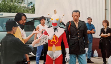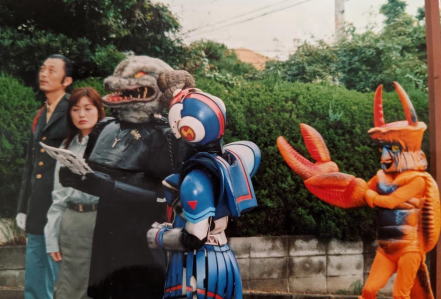| ミニドラマ、といっても、 番組のディレクターでもあった喜井監督以外は、 スタッフも出演者も全員、 番組に応募して選ばれた一般視聴者(しかも映像制作など未経験)、 つまりド素人であったがゆえ (玩具協力スタッフとして 番組に第1回から関わらせていただいていた僕も、 喜井監督に頼み込んで出演者の1人にしてもらいましたが 当時は役者ではなくサラリーマンでした)、 まぁ、はっきり言って、拙い自主製作映画のようなクオリティの、 脱力するしかない作品だった(苦笑)のですが、 そんなものを、 いくら東海三県(愛知・岐阜・三重)のみが放送対象地域とはいえ 毎回公共の電波にのせる暴挙(笑)が酔狂すぎてウケたのか、 愛ある特撮ファンの間で噂がどんどん広まり、 ビデオ化された際には全国から注文が届くほどの人気を得て、 やがては、 デパートの屋上などでアトラクションショーが開催されたり、 写真による絵物語が小学館の雑誌『てれびくん』に連載されたり、 セーラーファイターのソフビ人形が発売されたり・・・と、 嘘みたいな展開で盛り上がっていって、 最終的には、第22話まで続く事になりました。 しかも、番組が終了した後も、 上映会やトークショーが開催されたり、 オリジナルビデオとして続編が制作・販売されたりして、 忘れ去られず語り継がれ、 生誕10周年を迎えた際には、 30分番組の単発ドラマとして、続編の続編が制作・放送されてDVD化、 さらに生誕20周年には、 WEBドラマとして、続編の続編の続編が全8話も制作・配信され、 ついには、 劇場版までもが(続編の続編の続編の続編)、制作・公開された次第。 いまだに信じられません(苦笑)。 もちろん、僕・・・ってか関係者一同、一生懸命取り組みましたし、 応援・支持して下さった方々には心から感謝していますが、 あの『セーラーファイト!』が? なんで? って感じで、本当に信じられないのです。 |