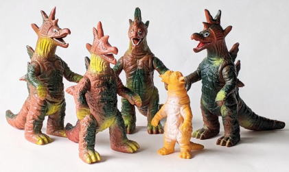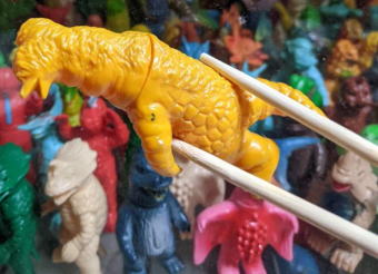 今日、ハラスを踏んづけて足型つけちゃった記念に、の怪獣の足型シリーズの人形を・・・、