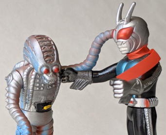 ミニサイズだと、下記のように、タイガーセブンのほかに敵キャラが4種もあるので、闘わせて遊ぶ事が出来ます。
