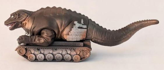 戦車の上に恐竜が乗ってる怪獣だ、