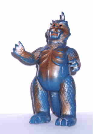 マルサンソフビの代表的存在、古代怪獣ゴメス。 凶暴な肉食怪獣だが、 なんと、 キューピー人形のフォルムを参考に作られた、との事。 時代背景と職人芸が味わえる名作。 手に取れば、 マルサンのソフビ怪獣人形が いかに性格最良の玩具であるかが理解出来る。 |