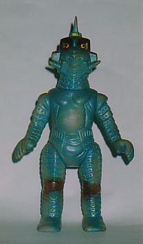 “初めての下北沢”で購入以来、 20年近い付き合いになるウインダム。 ブルマァク製スタンダードサイズ。 今でも手にすると、口の中で唾液が ギョーザとビールの味になる(笑)。 実物の怪獣の迫力を損なう事なく、子供のオモチャとして 見事にデフォルメされている優しい姿は、 マルサンソフビの真骨頂と言える造形である。 また、その素晴らしい金型を用いて、 メタリックな水色の塗装を施し 綺麗にまとめあげているいるところが、 ブルマァクソフビの真骨頂でもある。 マルサンの良さもブルマァクの良さも同時に味わえる、 一粒で二度おいしいソフビだ。 |