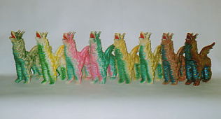 ソフビ怪獣人形の色違いが生み出す夢の底なし沼の、鮮やかで雅やかな心地良い世界へ。