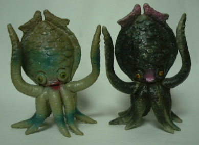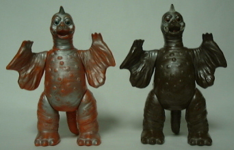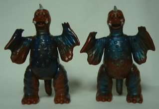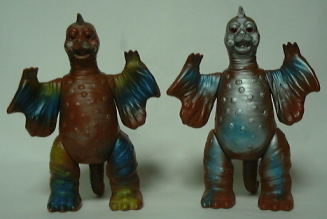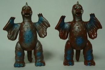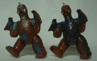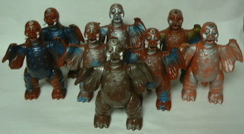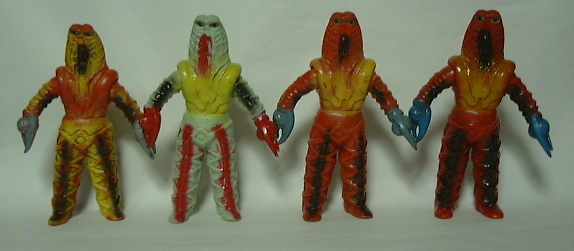 | 向かって左から2体がマルサン製、 右の2体は ブルマァク製の ジャイアントサイズとスタンダードサイズ。 |