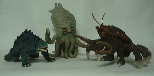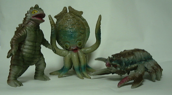 | これが映画に出てきた3匹。 向かって左端がカメーバ、右端がガニメ。 ゲゾラだけ手に入れて満足していられるわけもなく、 早々に購入した僕の三種の神器(言葉の使い方、間違ってる?)。 |