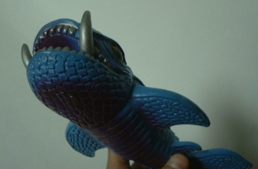 | だいたい、 こんな牙、実物のサンダーゲイには無いし、 ウロコなんて、 サンダーゲイどころか、クジラという動物にだって無いはずなのに・・・(笑)。 |