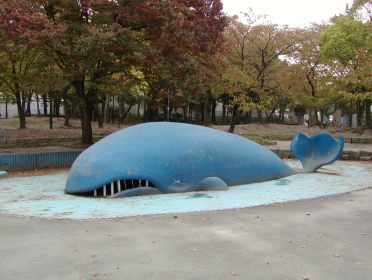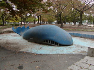 | この公園の辺りは、 江戸時代までは海だったそうで、 それが干拓されて現在に至っている。 そんな歴史を伝えるため、 このクジラの像は作られ、 そして守られてきたのだろう。素晴らしい。 それにしても、 大昔はここで 本当にクジラが泳いでいたのかと思うと、 なんだかとても不思議な気分になる。 |