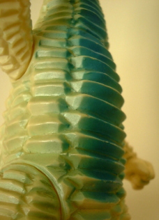 ソフビ怪獣人形の歴史の中で取り上げるなら、この再販人形の方が適切かと、僕は考えます。