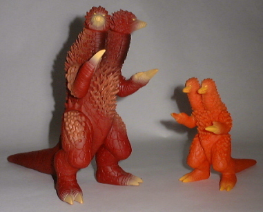 | 向かって左側はウルトラ怪獣シリーズで全長約15センチ、 右側は食玩で全長約10センチ。 |