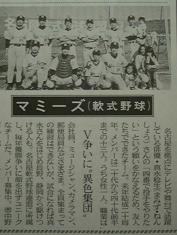 | 名古屋で活動するスポーツ団体のひとつとして、 5年前、中日新聞の市民版で紹介して頂きました。 記念になるので、 切り抜いて大切にファイルしてあります(笑)。 |