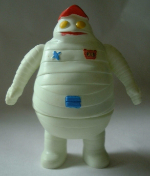 | ミイラ男 全長約11センチ。 ミイラというのは、 痩せ細った姿のイメージがありますが、 それに反して、 こんなにもブクブクに太っているところが なんとも面白かったです。 でも、 包帯が解けかけてチラッと見えた足は、結構細かった記憶があるので、 ただ包帯を巻き過ぎてるだけで、 中身はやっぱり痩せ細ったミイラだったかもしれません。 いや、待てよ、 食いしん坊だったから、やっぱりおデブちゃんだったのかな? ・・・どーでもいいや!(笑) |