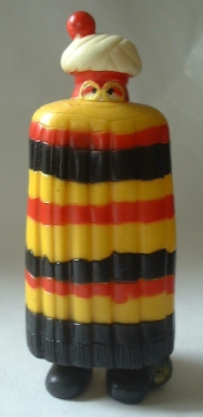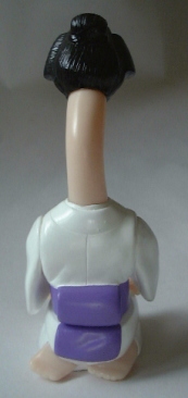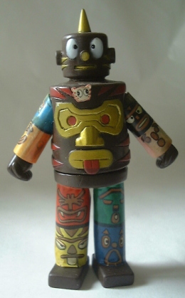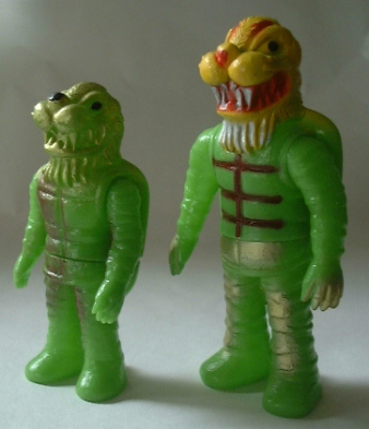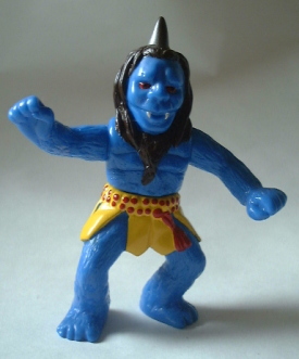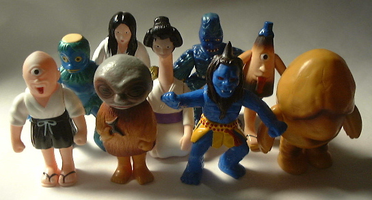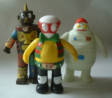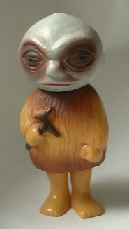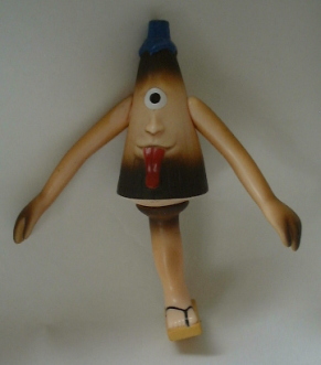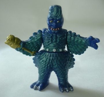 | アマノジャク 全長約13センチ。 古くから日本に伝わる “天邪鬼(あまのじゃく)” という小鬼が、 モデルかと思われます。 『古事記』や『万葉集』にも登場するというその妖怪が、 人が幸せになるのを邪魔したがる性格であった事から、 現代では、 性格の捻じ曲がったひねくれ者の事を “あまのじゃく” と呼んだりしますね。 メダマンの仲間であるこのアマノジャクは、 そんなひねくれた性格が 前面に出たキャラクターだったと記憶しています。 それにしても、 このユニークで愉快なデザインの発想には、感服してしまいます。 |