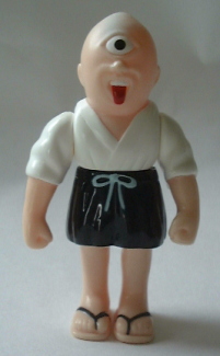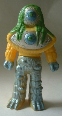 | メダマン 全長約11センチ。 目玉のお化け。 目目連(もくもくれん)、百目、 手の目、百々目鬼(とどめき)など、 目玉に関係する妖怪はたくさんいますが、 おそらく、 その仲間であろうと思われます。 放送当時、 或るクラスメイトが 「メダマンなんて、 お化けのくせに全然恐くないがや」 って言っていたのを憶えてますが、 実際に、 こんなのが突然部屋に現れたら、 かなり恐いと思います(笑)。 |