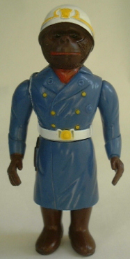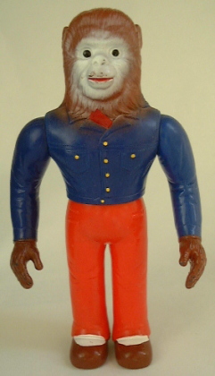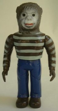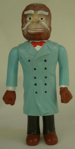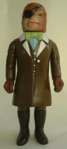 | ゴビー地方長官 全長約14センチ。 中央政府の顔色ばかり窺っていた小心者のオランウータン。 僕の記憶が正しければ、 最初の1、2話くらいにしか登場していないはず。 たまたま僕は憶えてたけど、 忘れてる人の方が多いのではないだろうか。 ・・・で、 例によって そんなキャラクターを商品化してしまっているところが、 なんともブルマァク(笑)。 |
