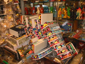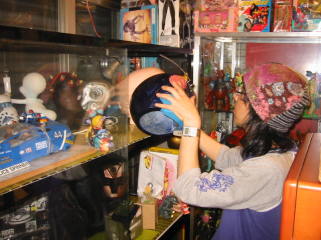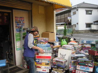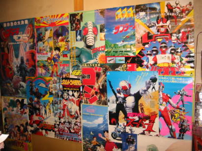 | 棚を撤去したら、 落書きや穴ぼこだらけの壁が現れたので、 ポスターを貼って隠しました。 新しいショーケース置いて商品並べたら、 ほとんど見えないだろうけど(笑)。 |