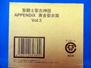 ![]() バンダイ 聖闘士星矢 セイントクロスマイス アペンディックス 黄金聖衣箱 Vol.3 外箱角ツブレ |