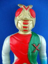 ![]() ![]() ポピー STソフビ 仮面ライダーX 並品 武器付 マフラー欠 股間・背中・太もも色ヤケ |